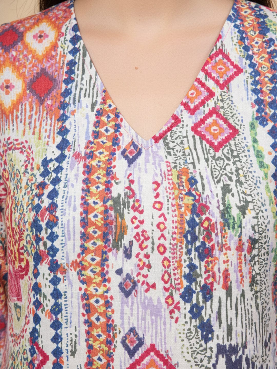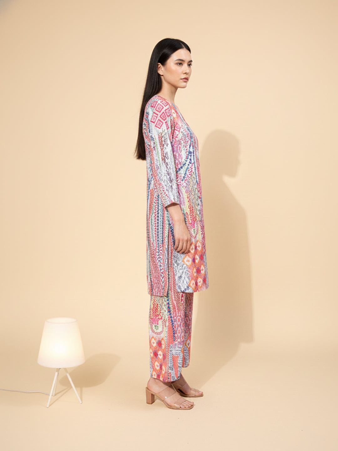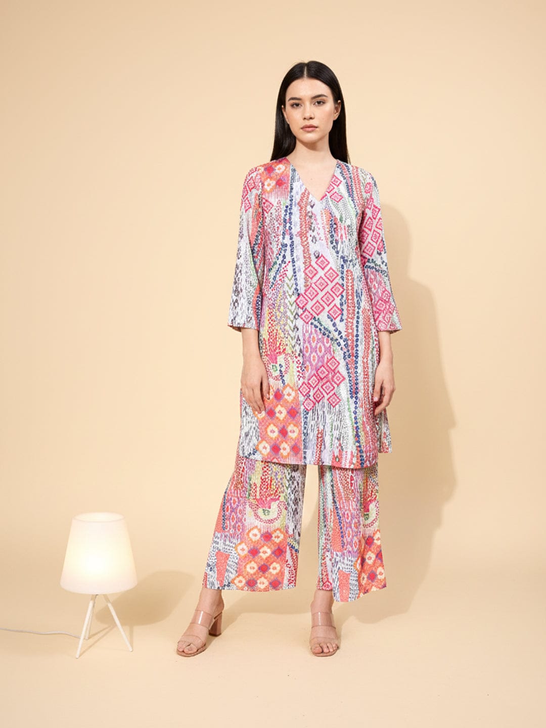 KSUT Women Multi Colour Abstract Printed Angrakha Style Kurta Paired With Tonal Printed Bottom