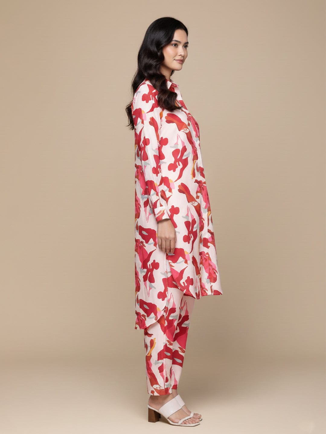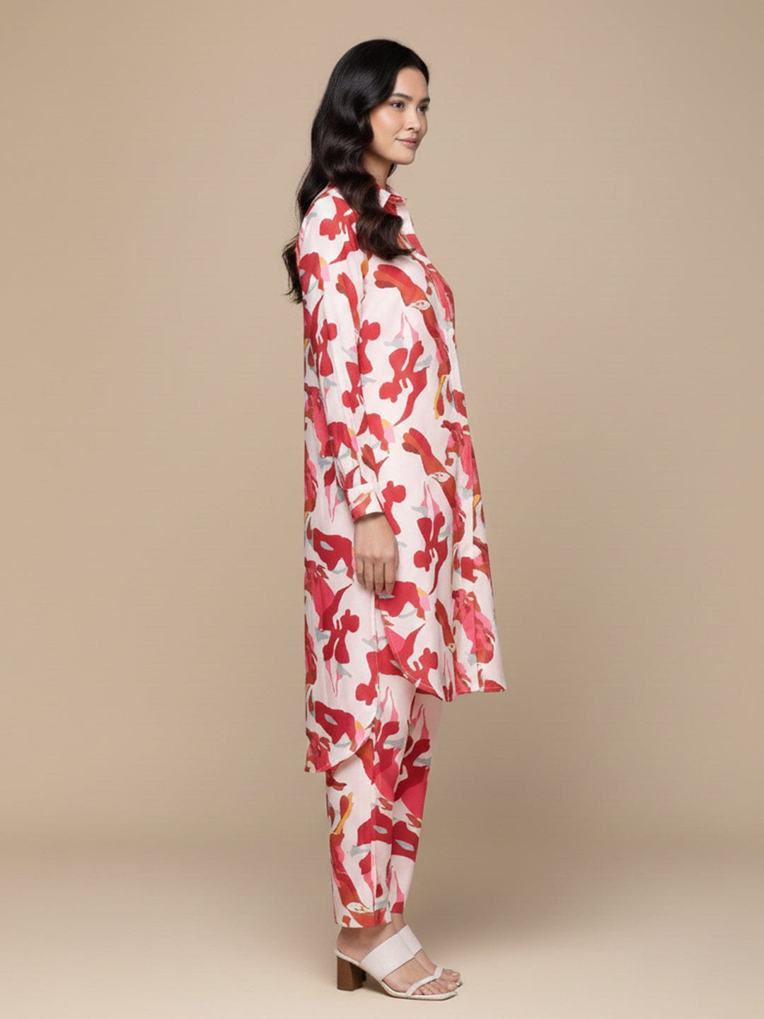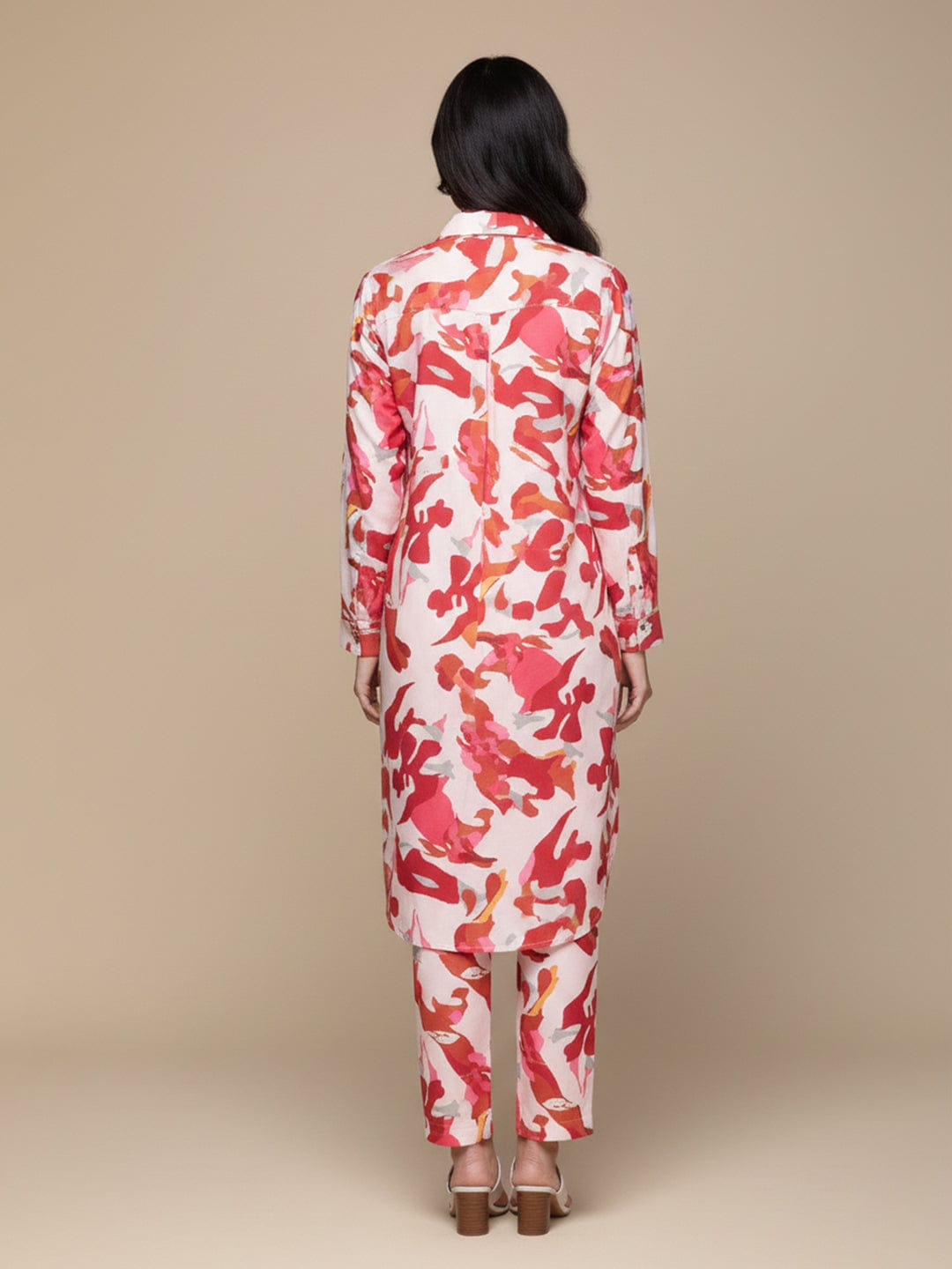 KSUT Women Cream Abstract Printed Shirt Collar Straight Kurta Paired With Tonal Bottom