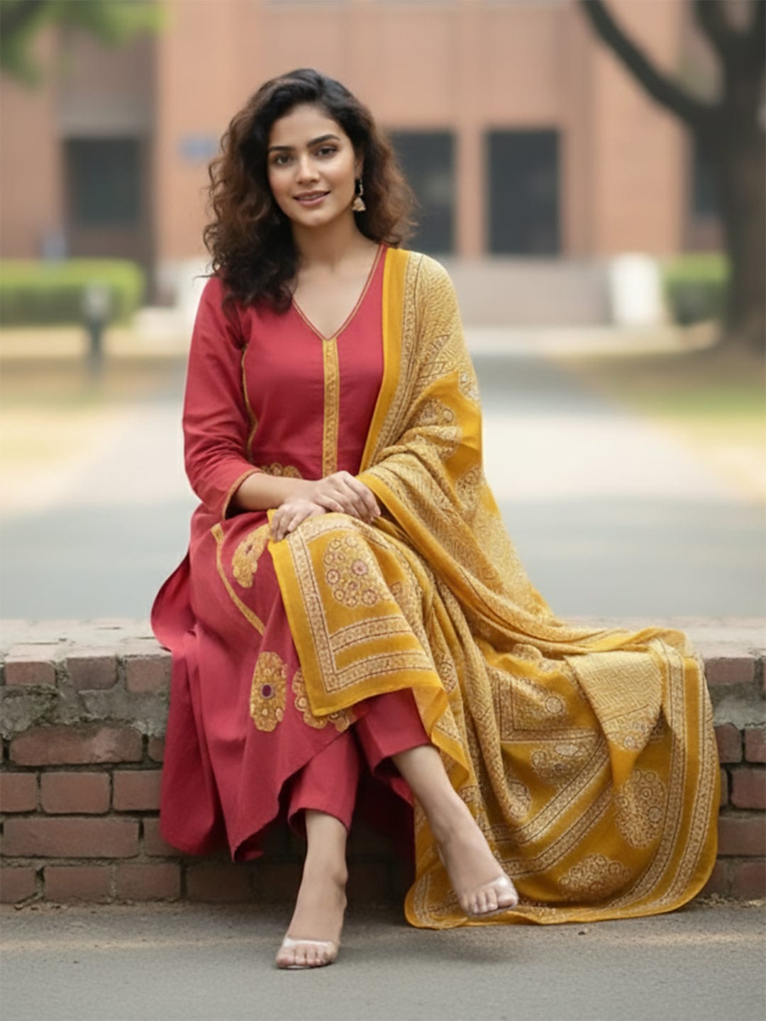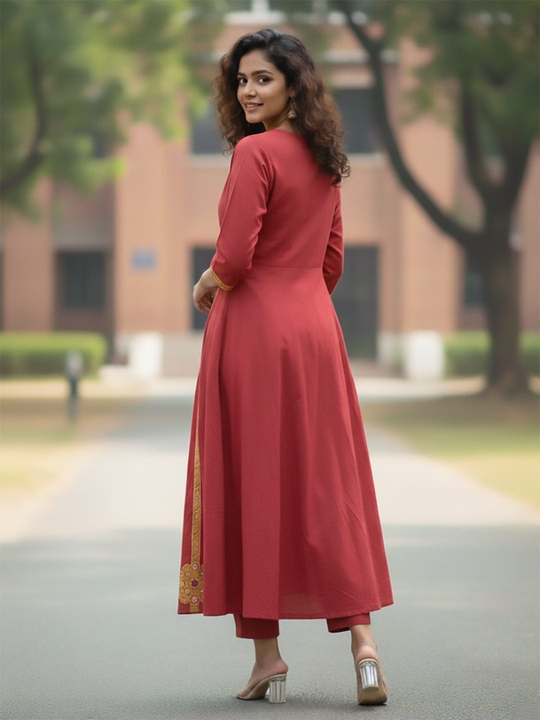 Rust Anarkali kurta set featuring multicolour buta prints, embroidered – Varanga