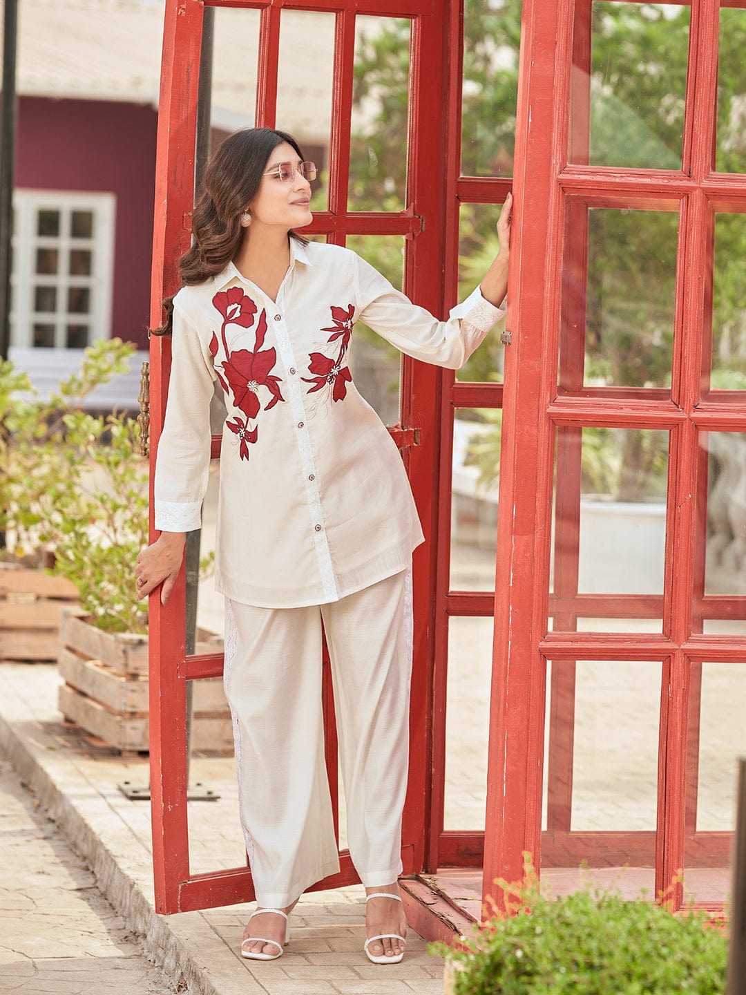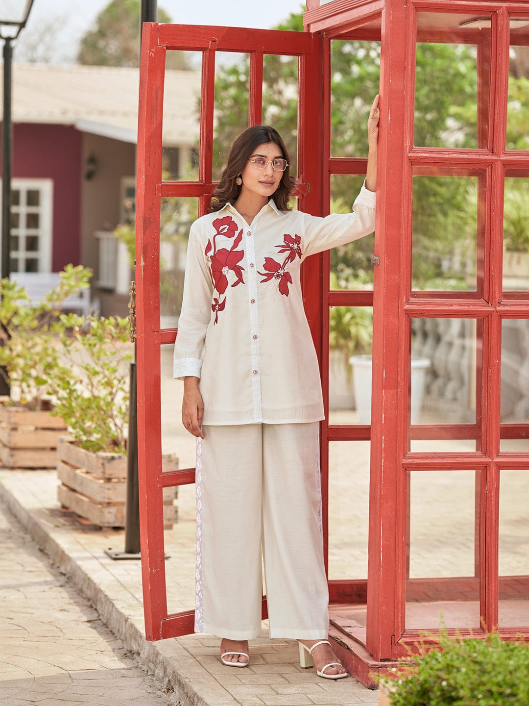 Varanga Women Cut Work and Thread Embroidered Shirt with Flared Palazzo
