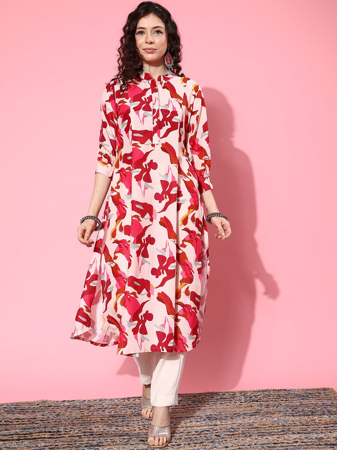 Varanga Women Pink And Maroon Abstract Printed Cotton Kurta