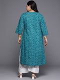 Varanga Women Plus Size Turqoise Blue Bandhani Print Gotta Embellished Straight Kurta With Three Quarter Sleeves Pl24 Vkur1103