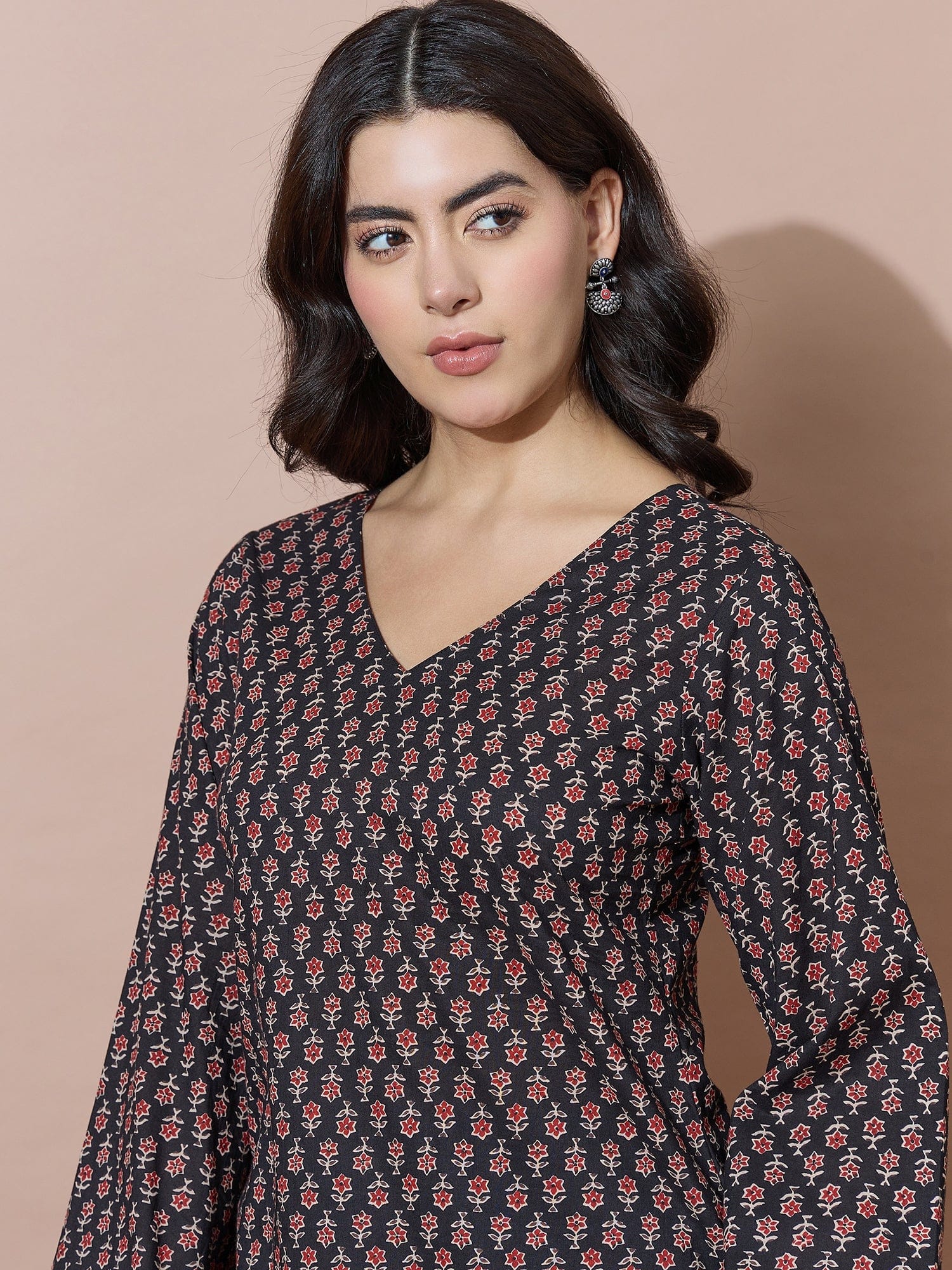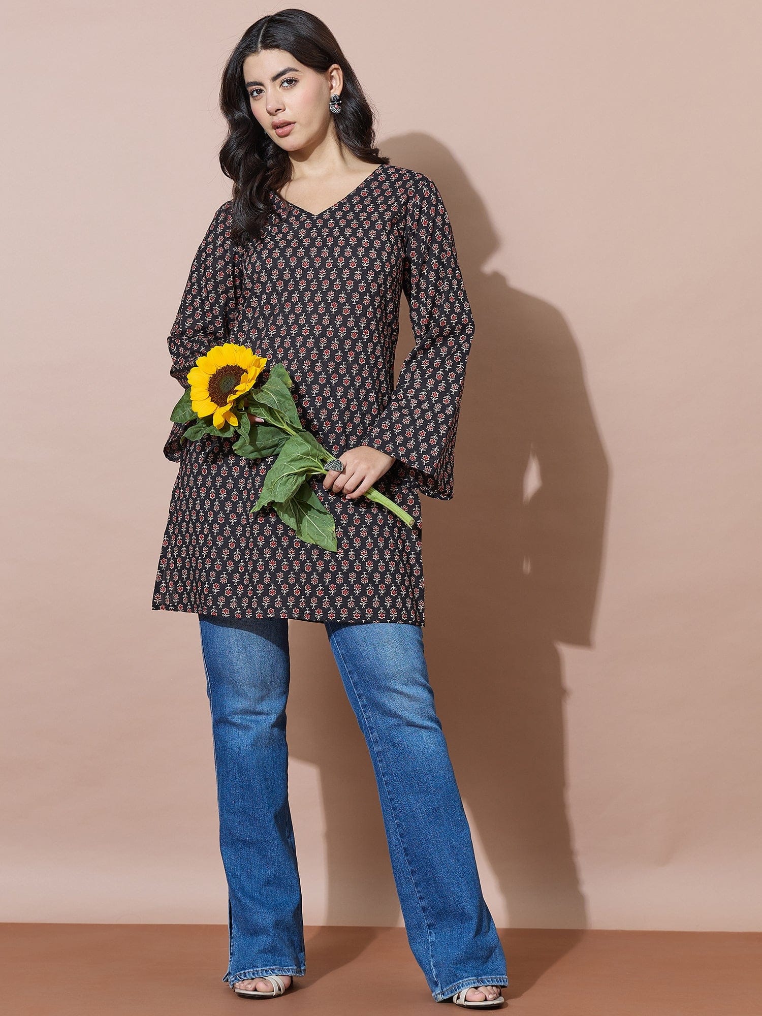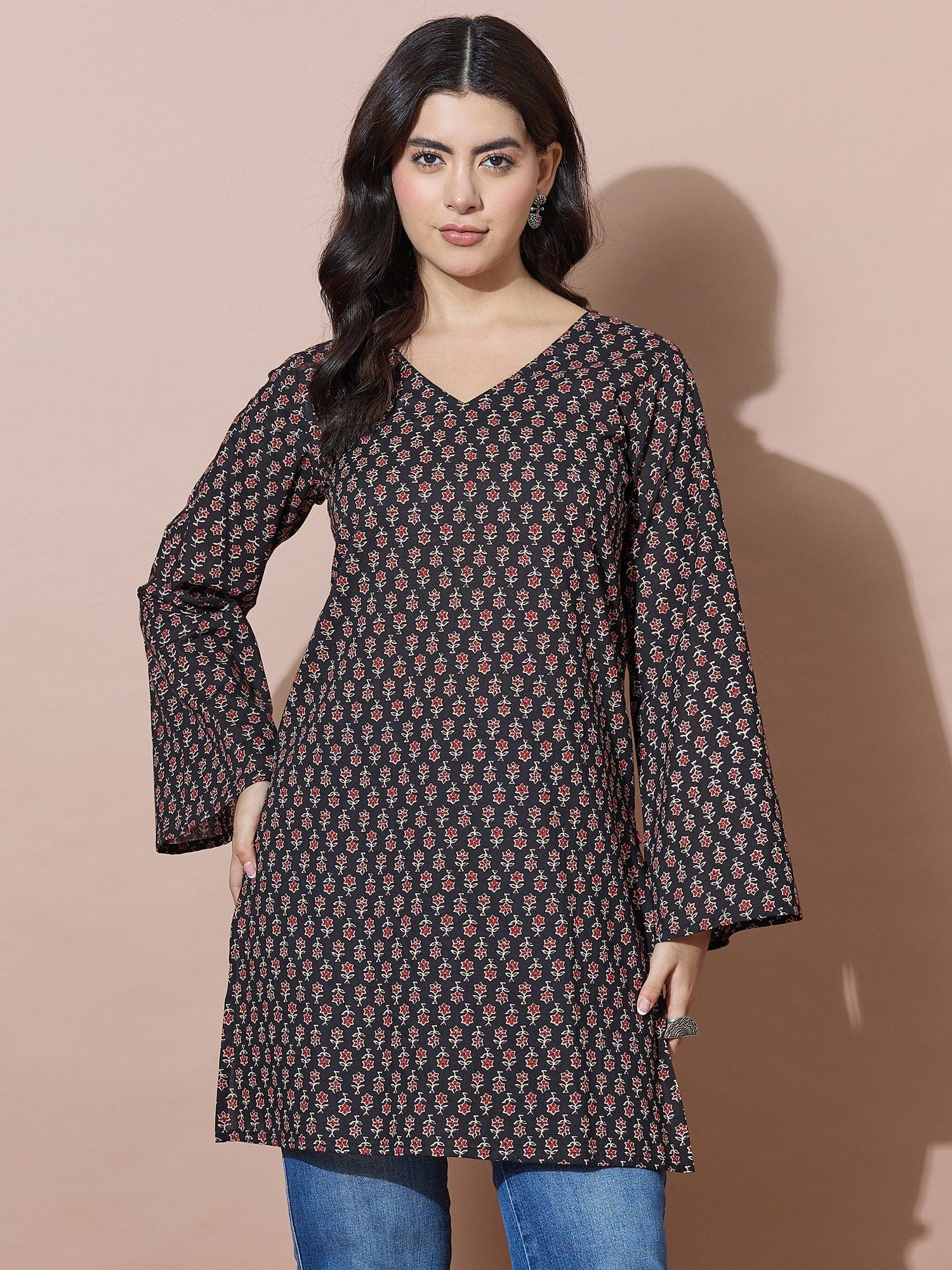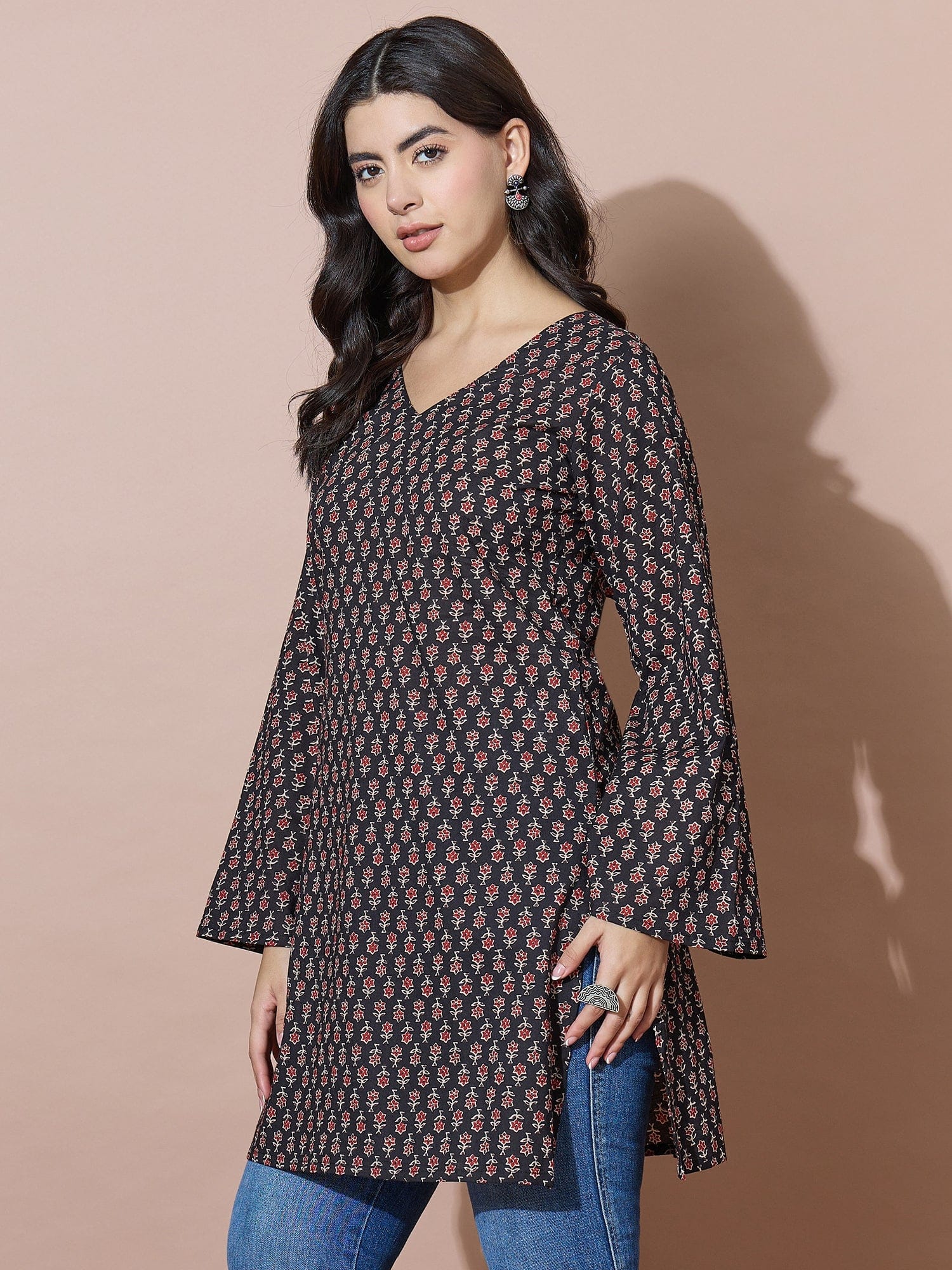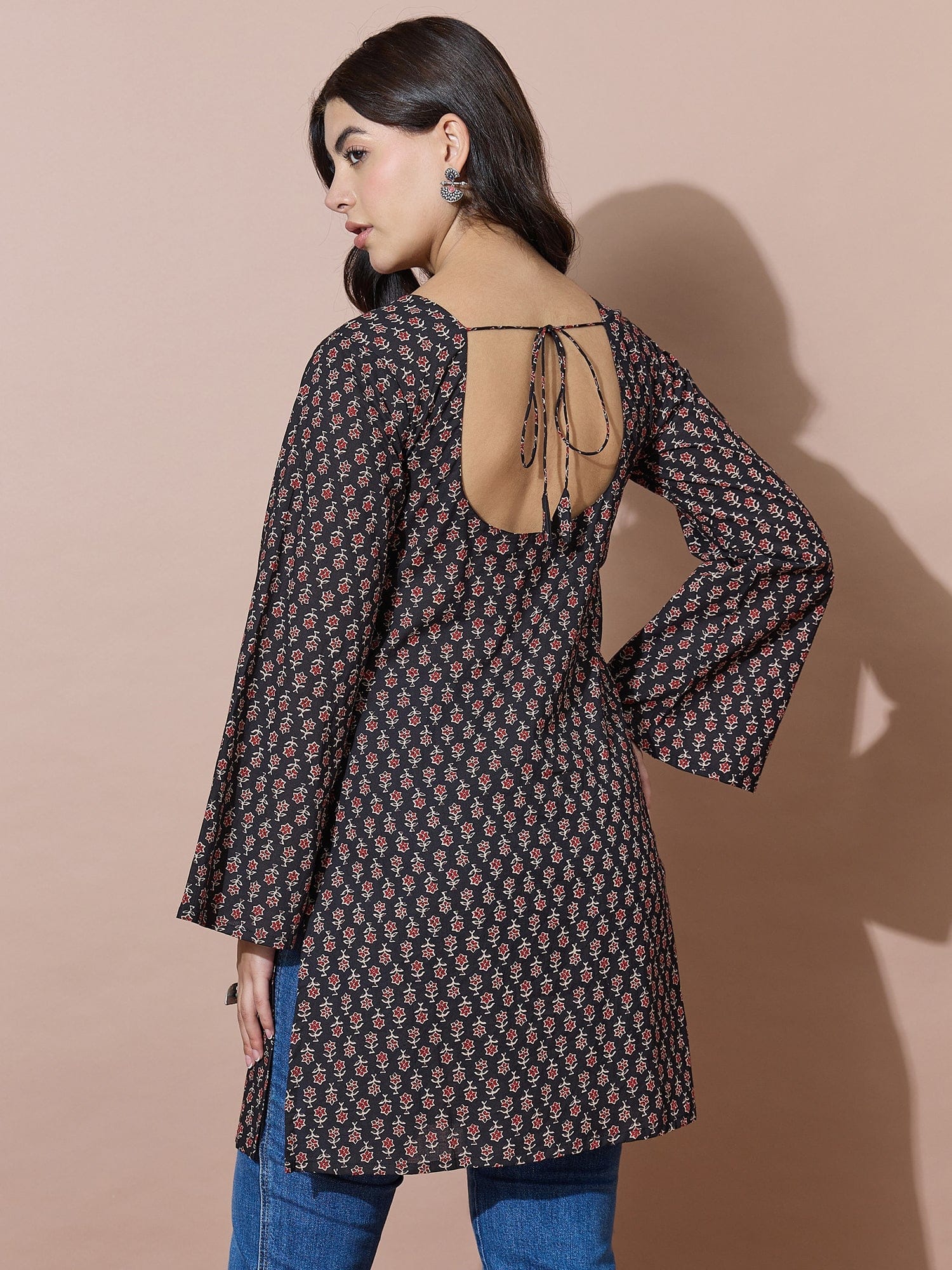 Black V-Neck Short Kurti With Back Tie-Up