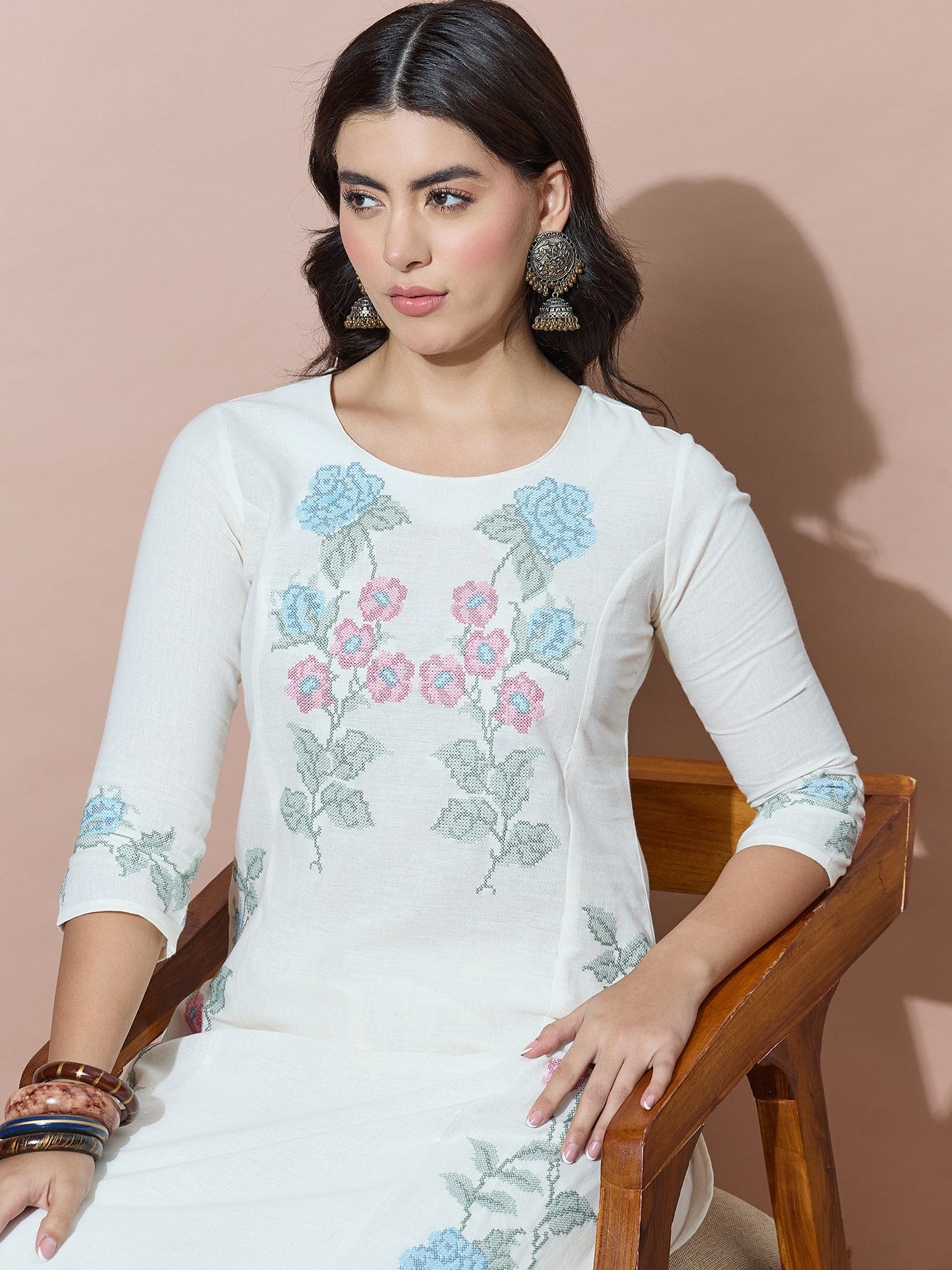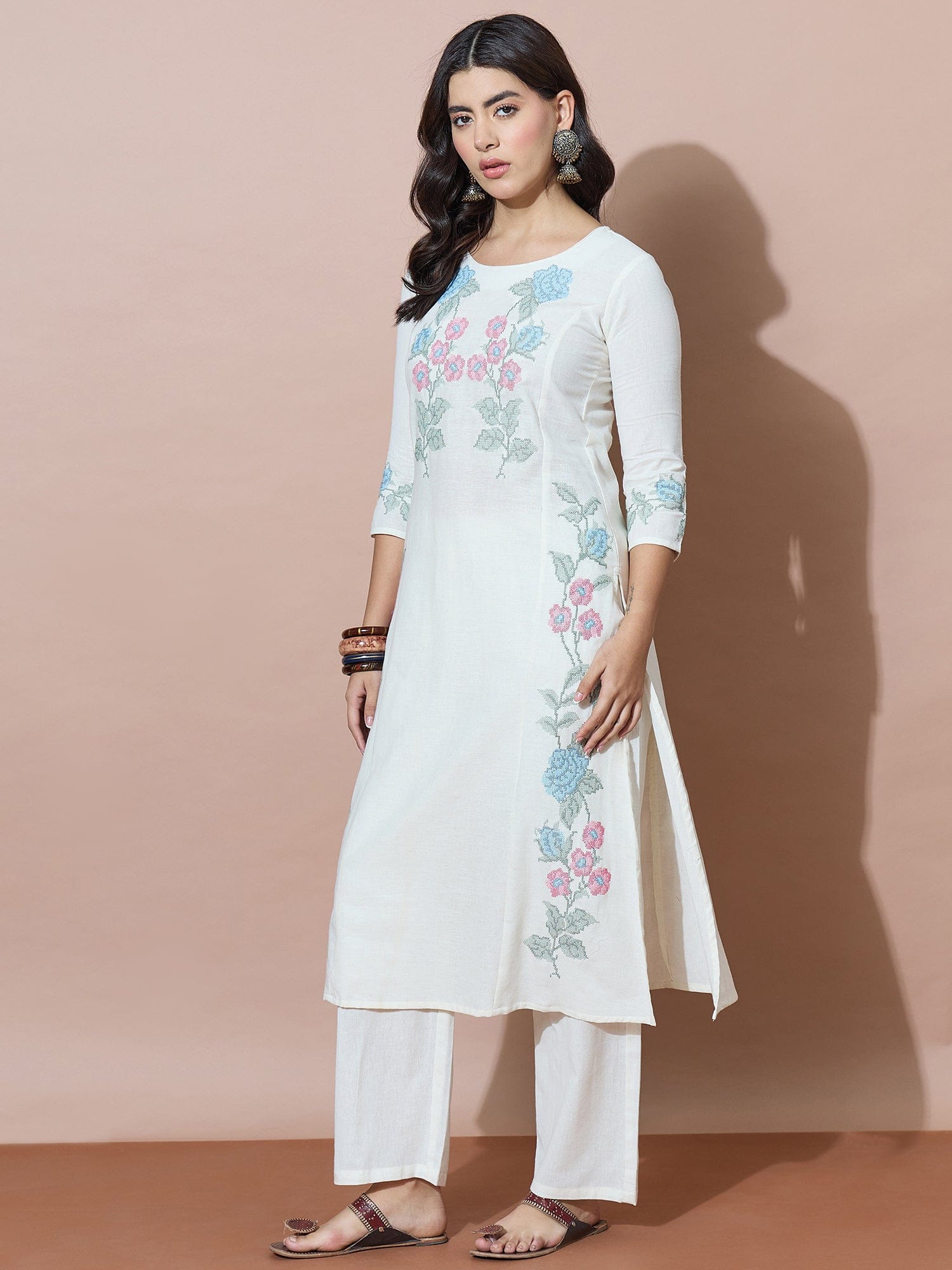 Summer Fresh White Embroidered Flex Kurta Set