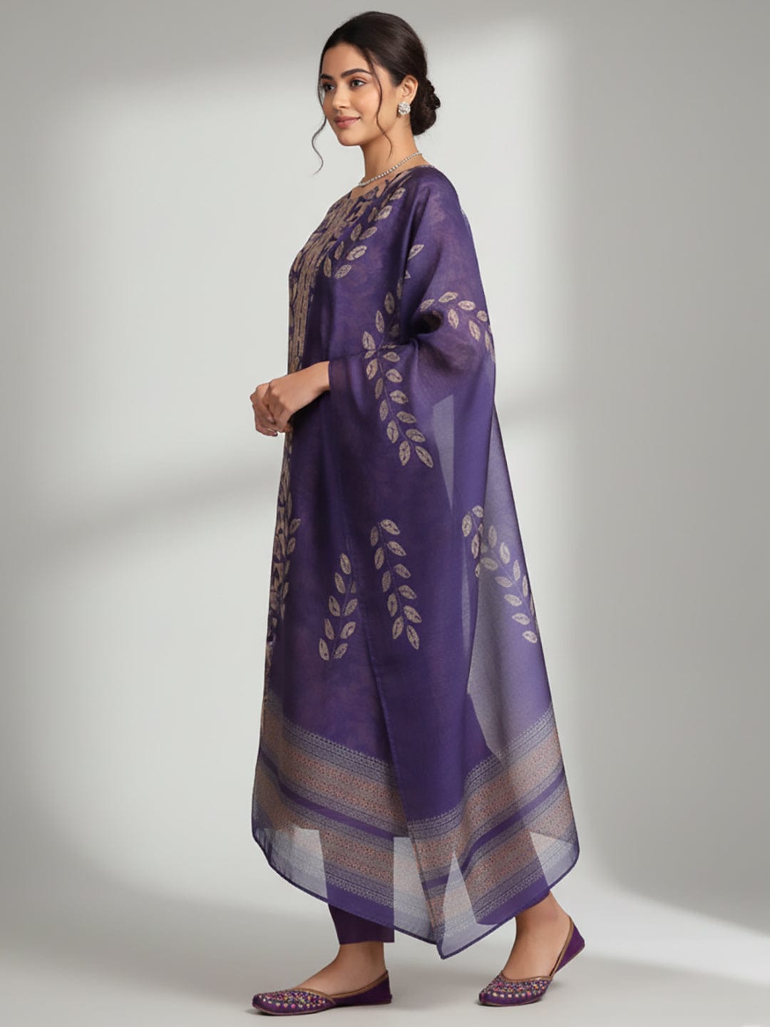Varanga Women Purple Floral Printed Straight Kurta With Trousers And Printed Dupatta.