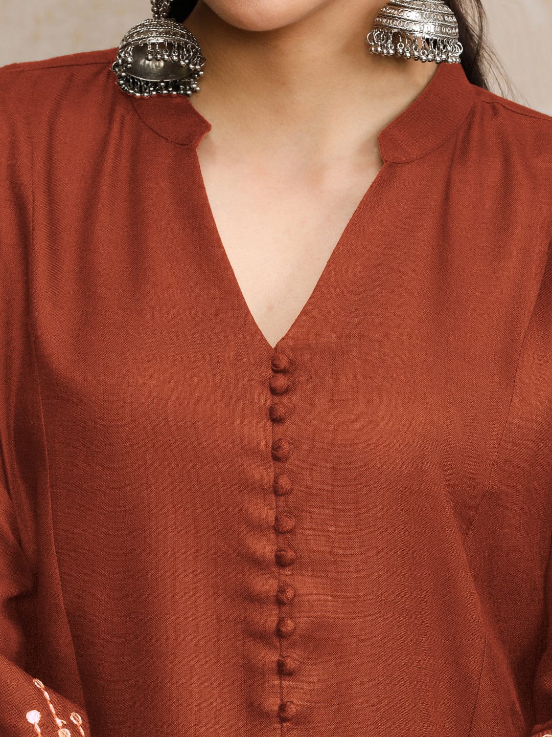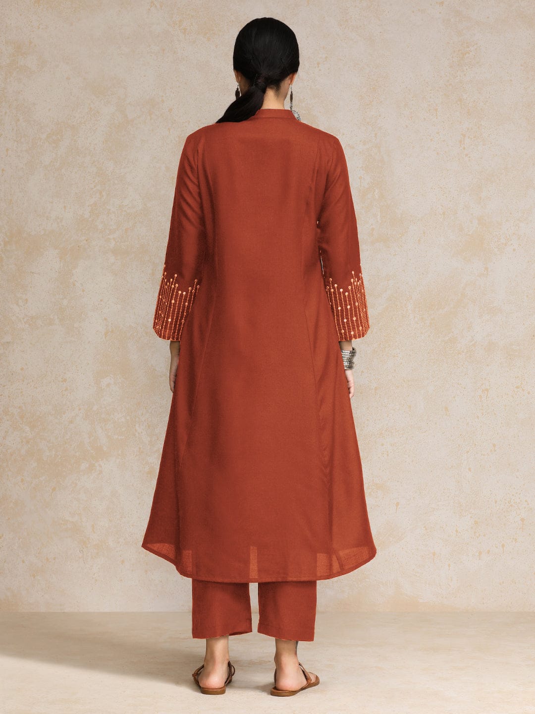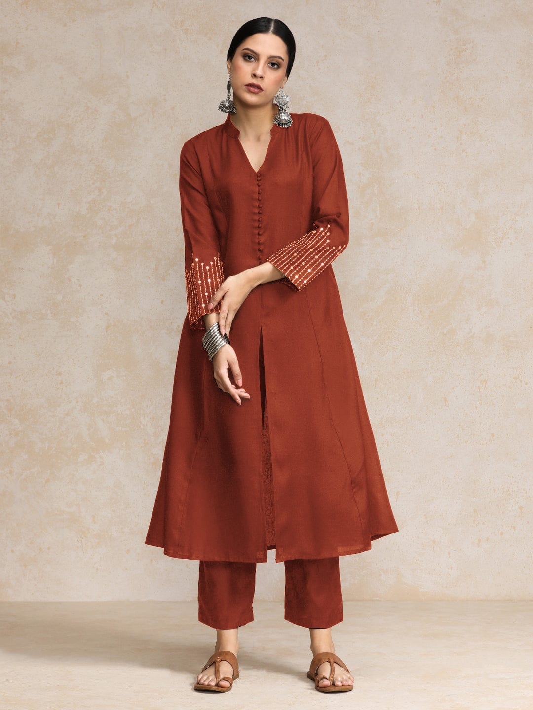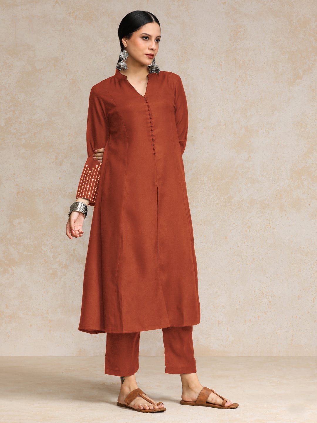 Black Mandarin Witn V Neck Anarkali Front Slit Detailing With Trouser