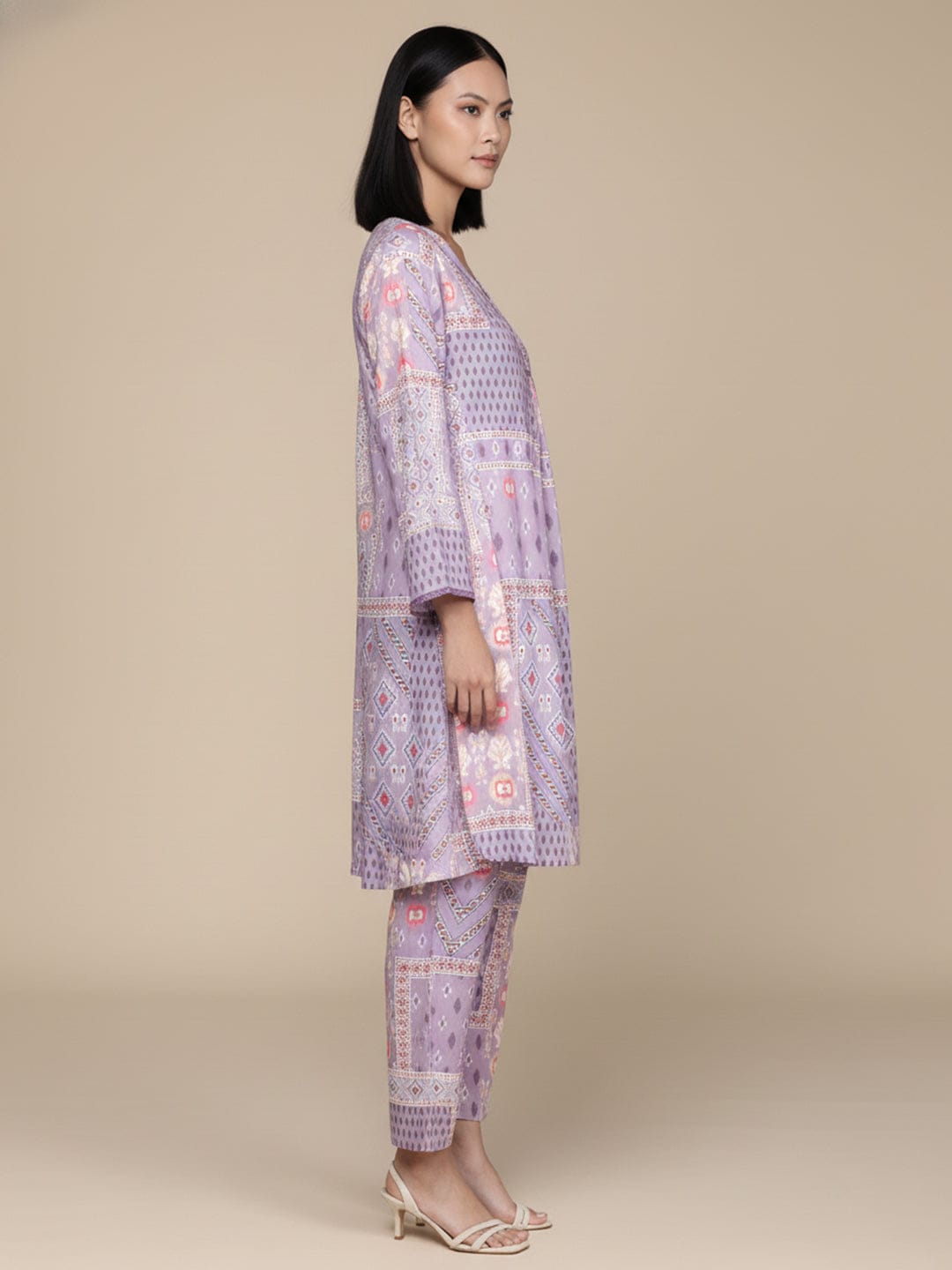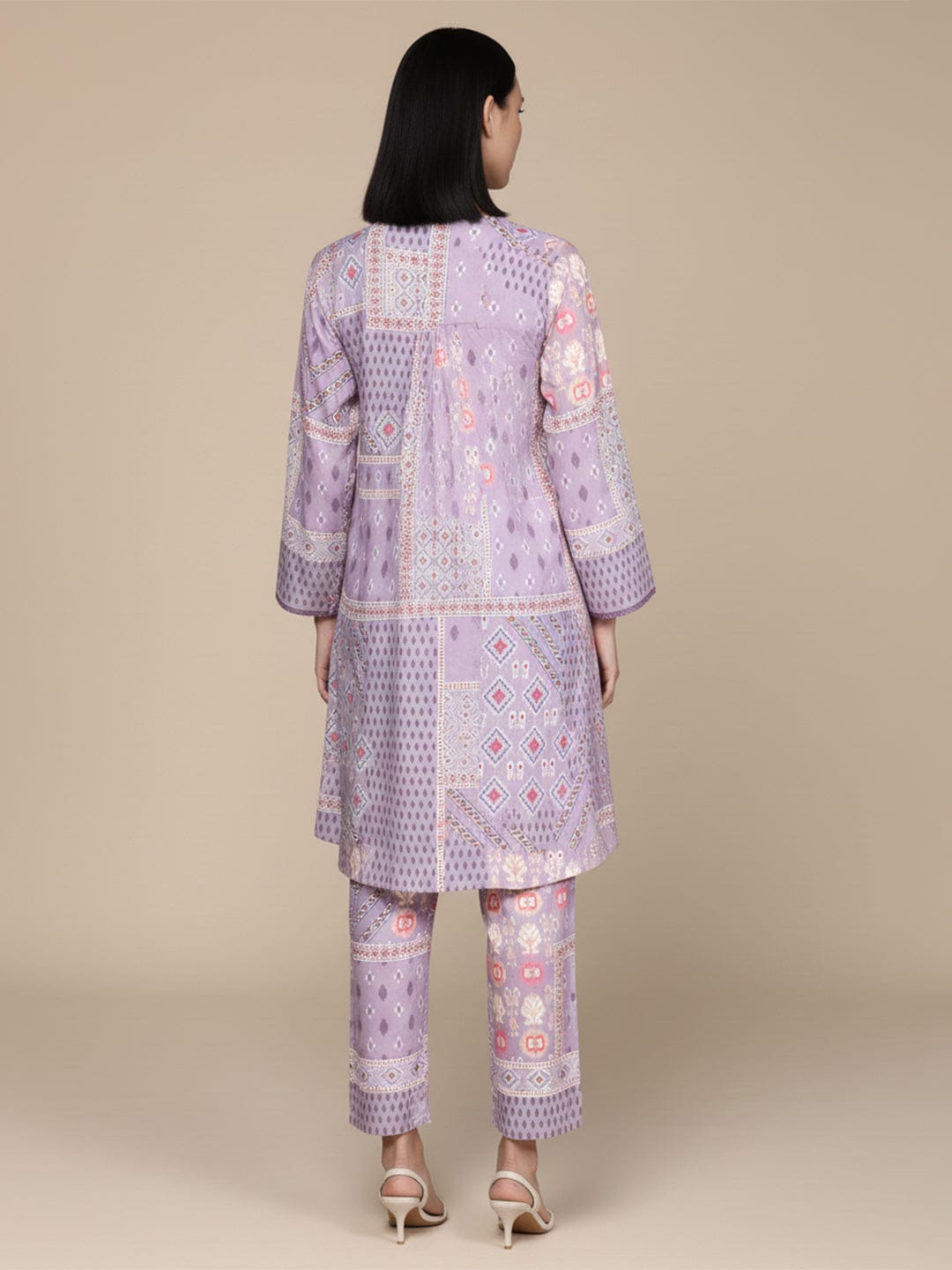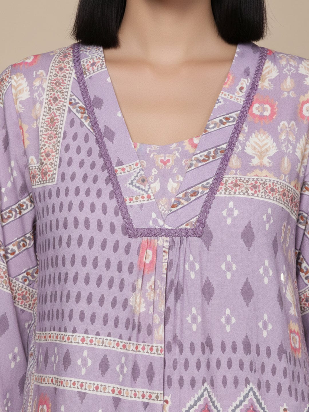 KSUT Women Lavender Abstract Printed V-Neck A-Line Kurta Paired With Tonal Bottom