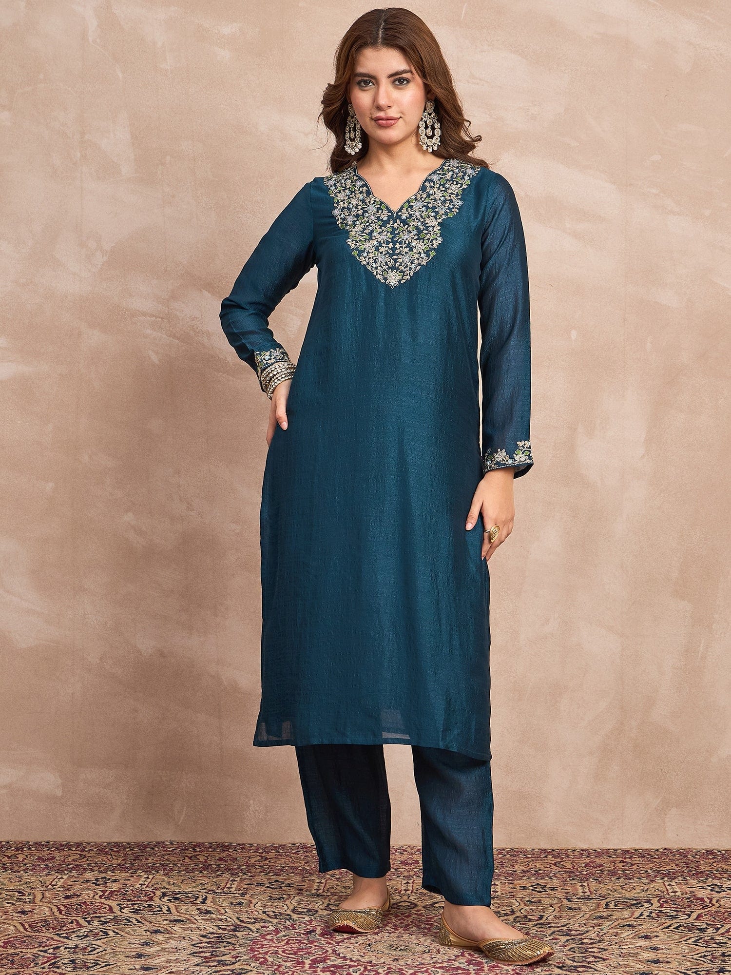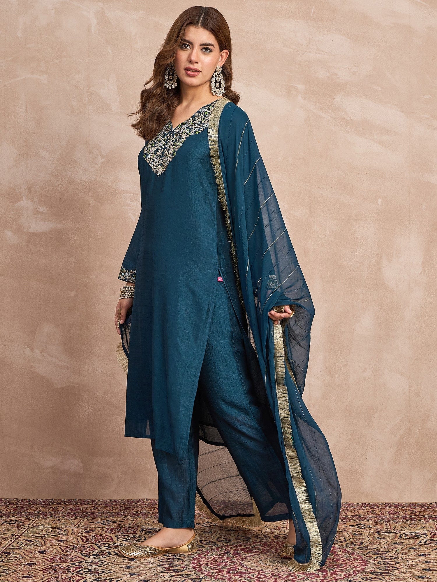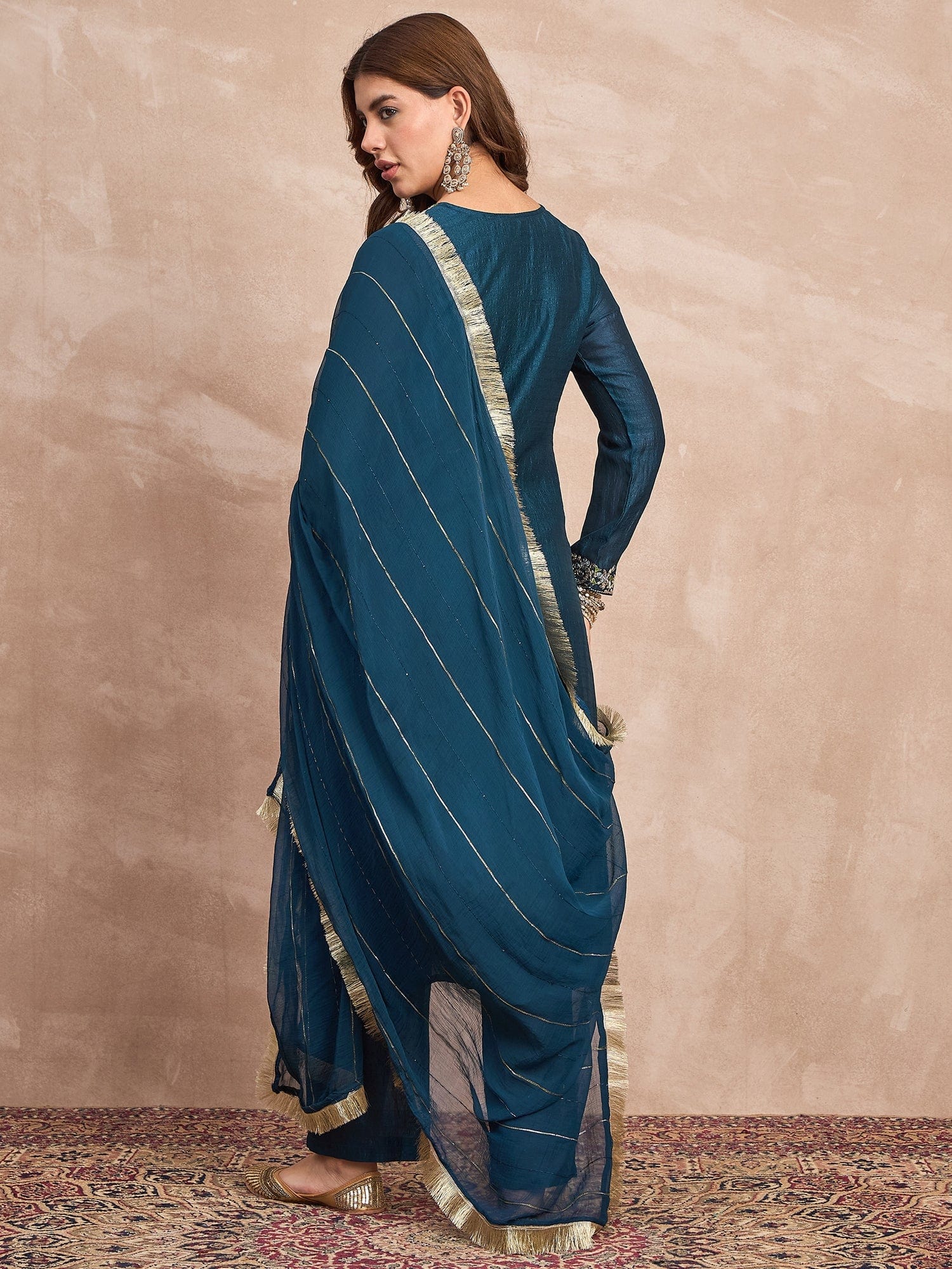 Kurta With Zari Embroidery, Teamed With Trousers And Paired With Dupatta
