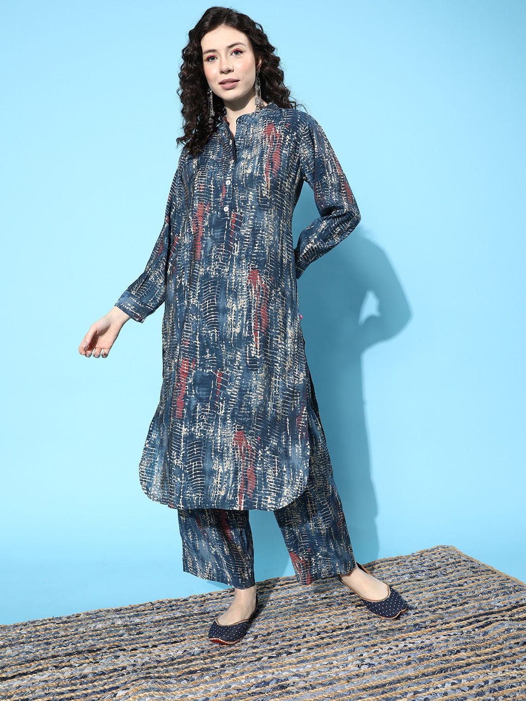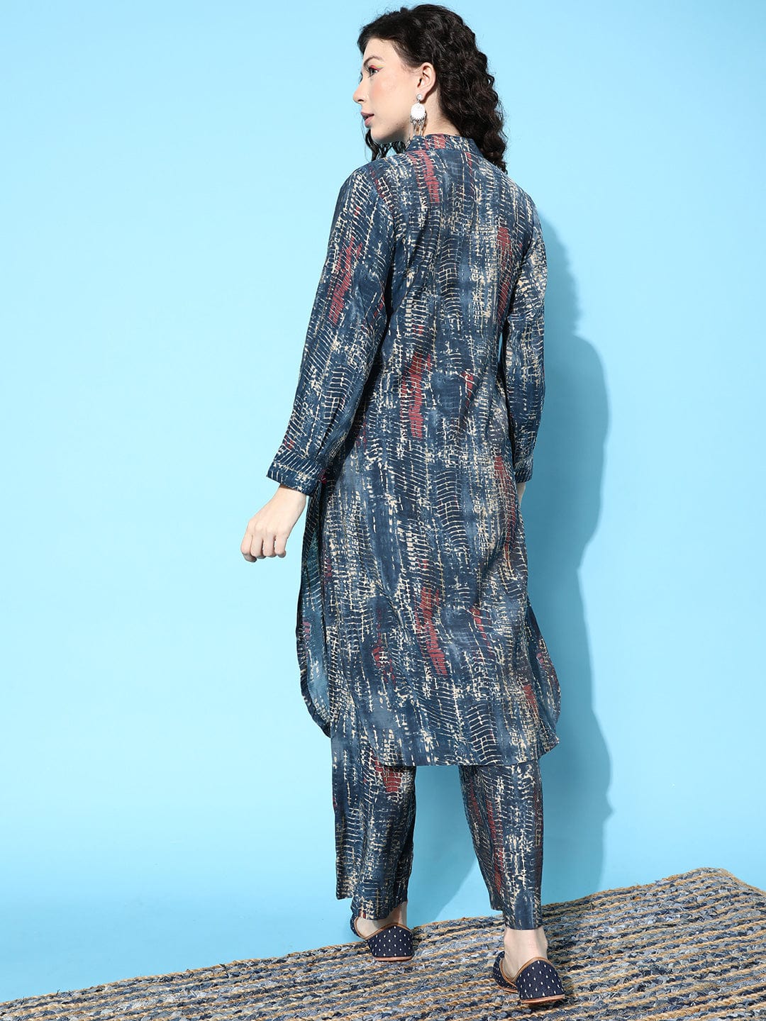 Varanga Blue Dyed Regular Bandhani Kurta with Trousers