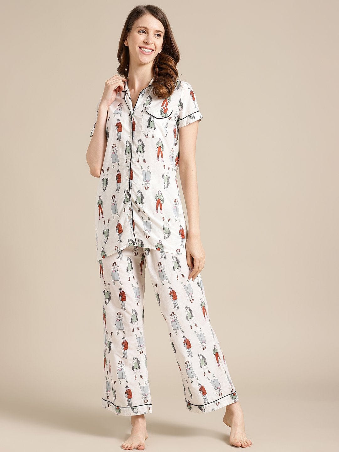 Varanga Off White Quirky Printed Launge Wear Set