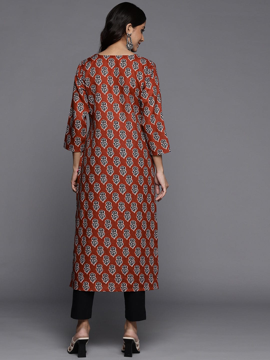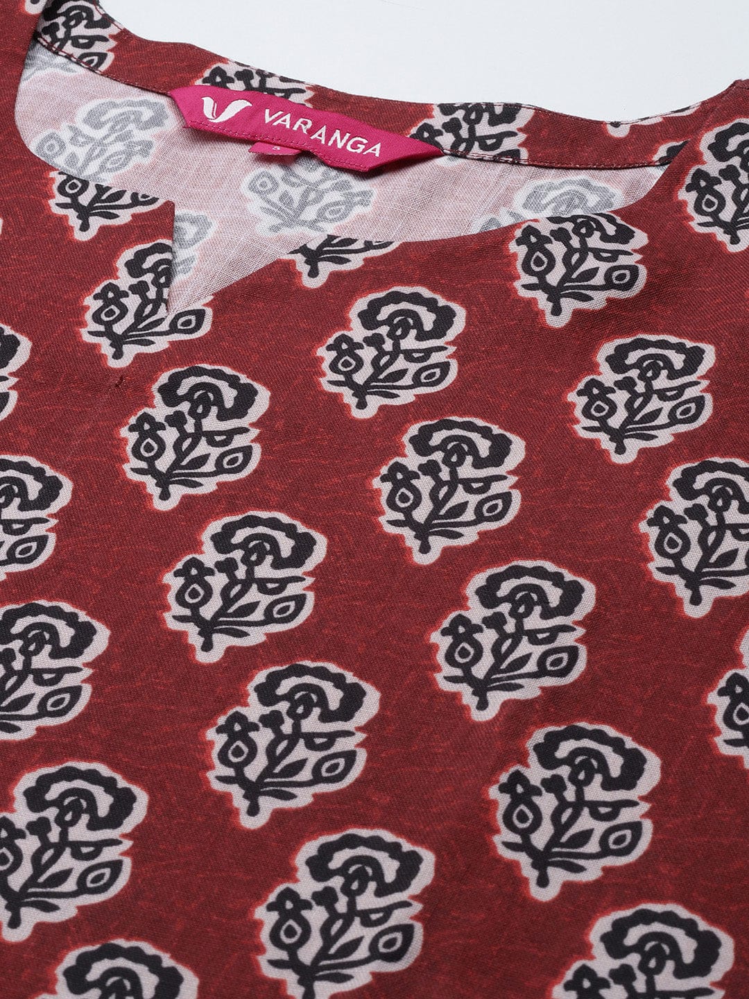 Varanga Women Maroon & Black Ethnic Motifs Printed Cotton Kurta