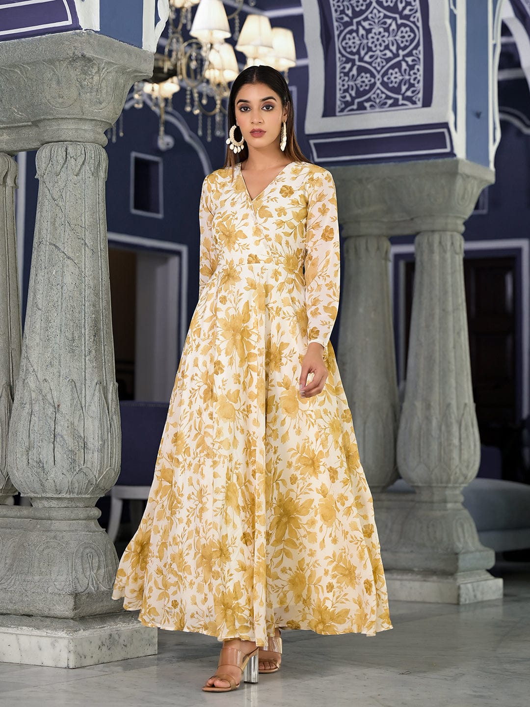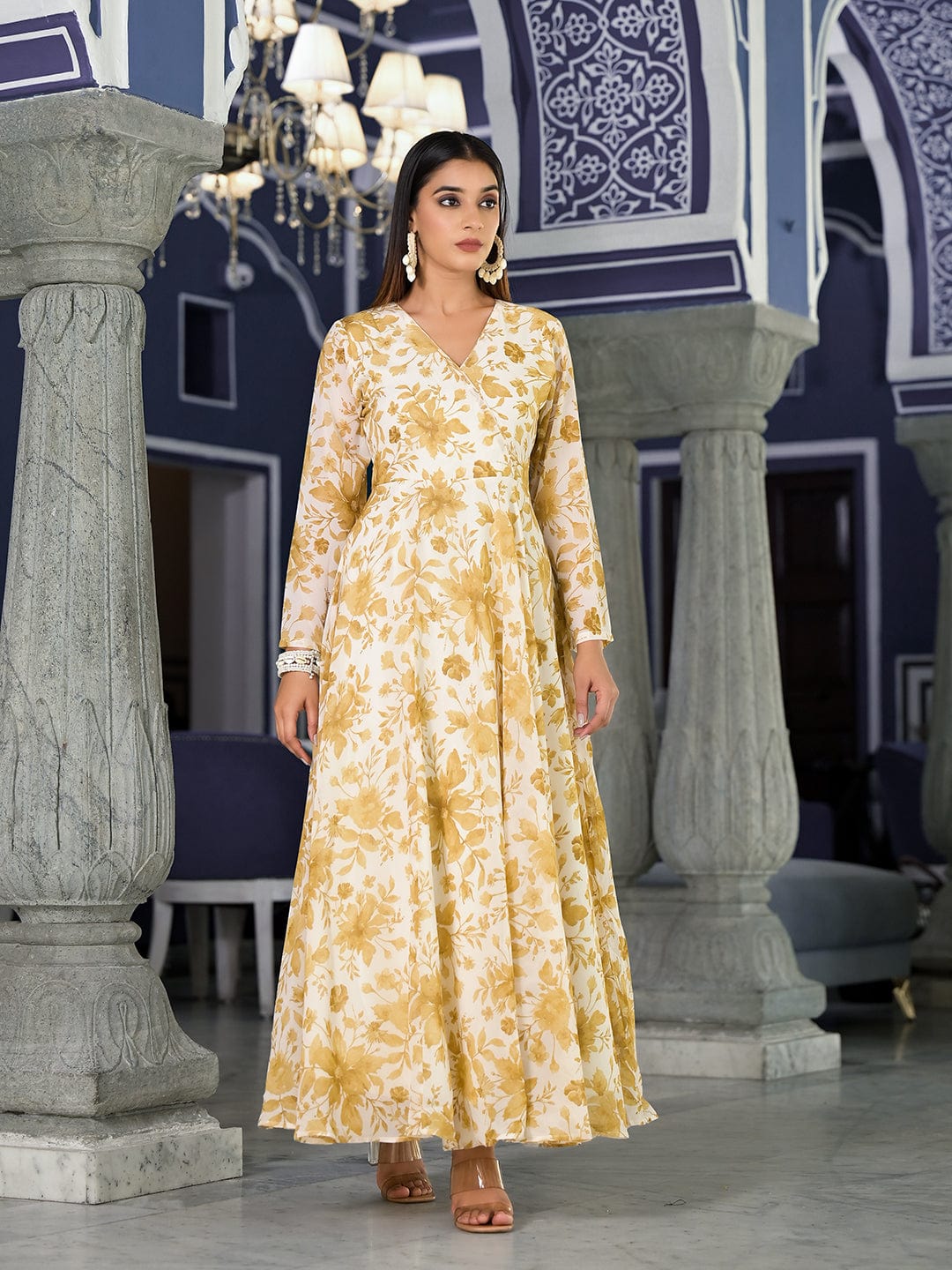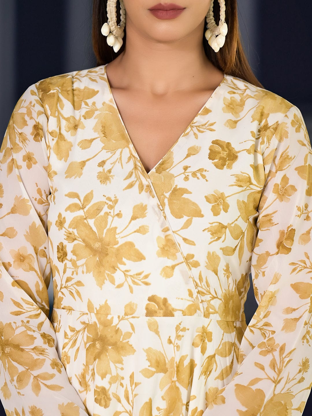 Varanga Women Off White Floral Printed , Full Sleeves Angrakha Style Kurta