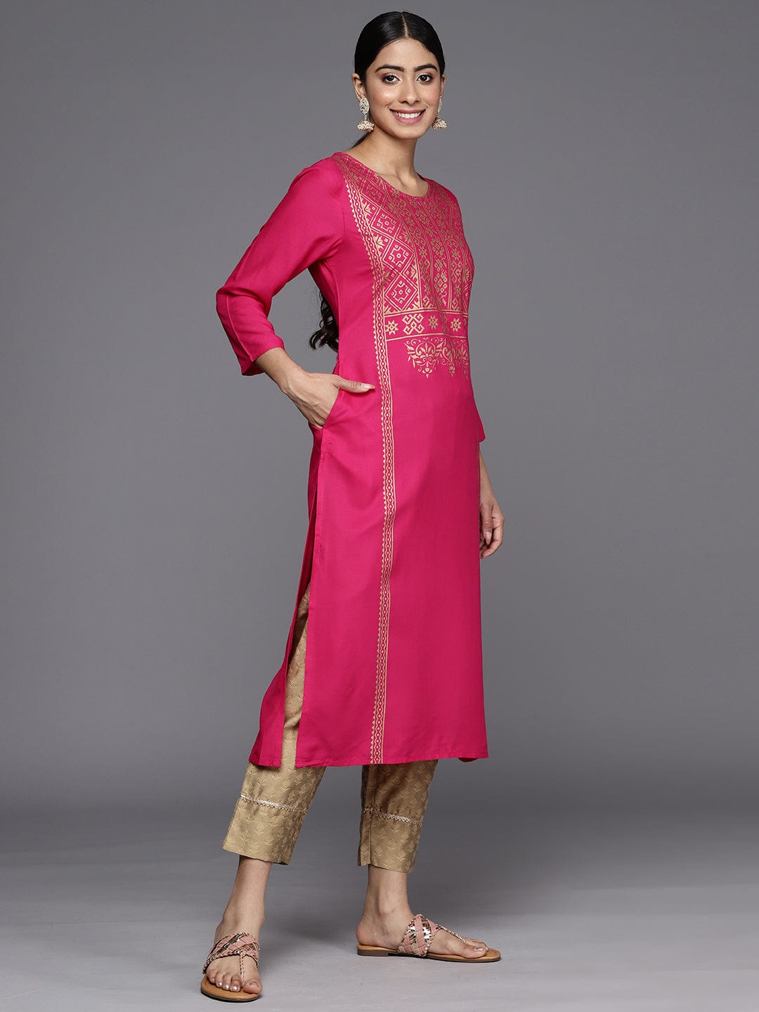 varanga women pink ethnic motifs printed kurta