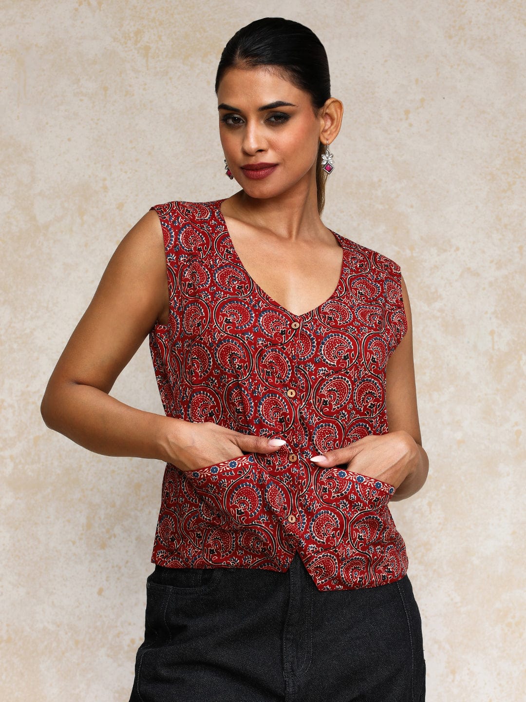 Varanga Women Printed V Neck short top