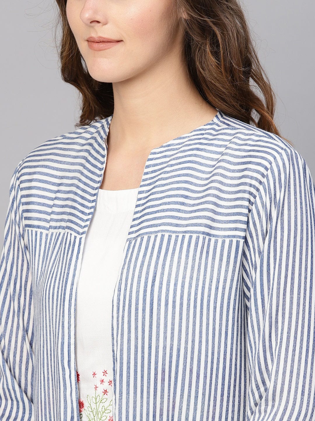 Varanga Women White Floral Embroidered Top with Ethnic Jacket